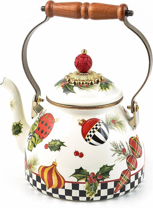 Enamel Curiosity Pot, Decorative Container for Home Decor, Green-and-White Emerald Check -